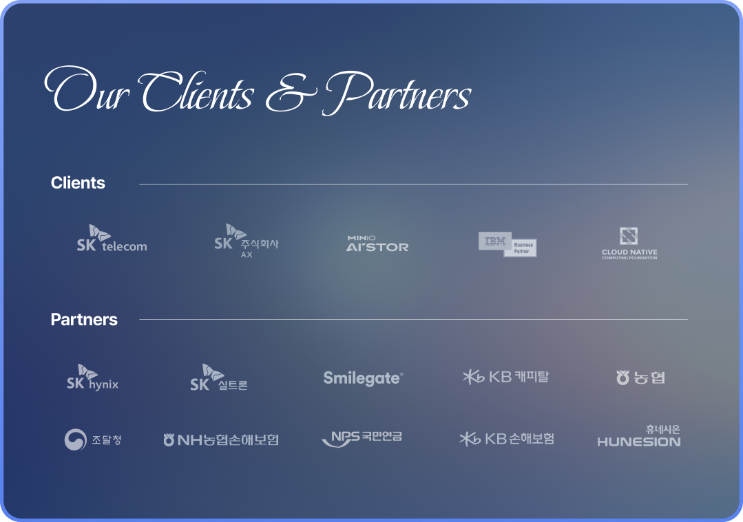 AI 인프라 및 DevOps 자동화 분야의 노하우를 바탕으로 기업 고객의 빠르고 안정적인 도입과 운영을 지원하고 있습니다